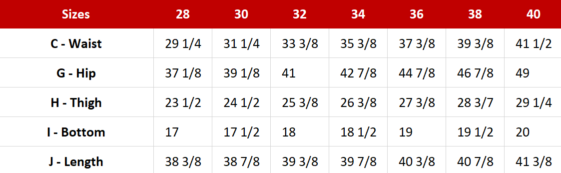 Available Sizes: 28 to 40