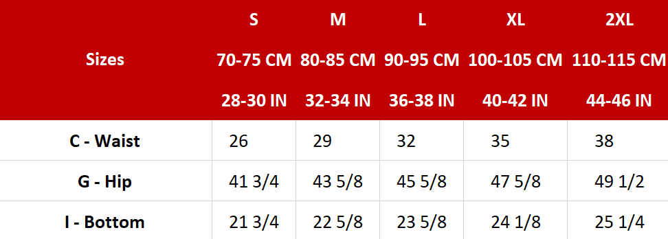 Available Sizes: S to XXL / 70-75 CM to 110-115 CM